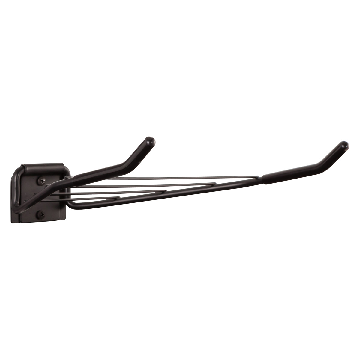 Epoxy-coated with a black finish, the rack features cushioned contact points and an 50 pound load capacity when properly mounted into a stud