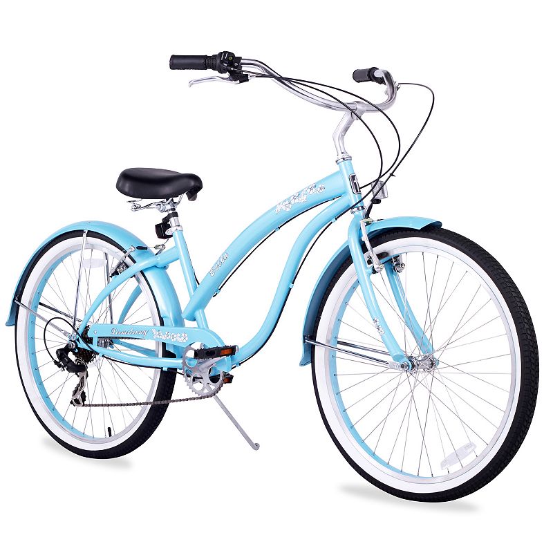 Offering an updated look for a cruiser bike and including front and rear fenders, the 26-inch, seven-speed Bella Classic cruiser bike from Firmstrong is made for easy, relaxed riding and fits most women from 5 to 6 feet tall